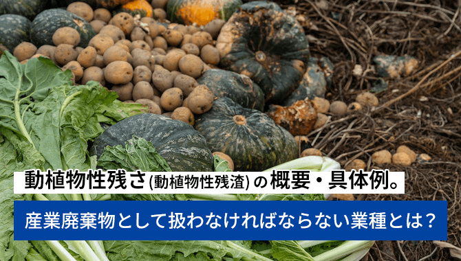 「どんなごみが動植物性残さ(動植物性残渣)に該当するの?」 「動植物性残さは産業廃棄物として扱うべき?それとも一般廃棄物?」 「事業...