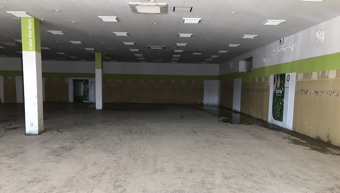 3日間ですべての水没により使えなくなった商品、什器、機械類をすべて搬出処分。1日あたり15名程の作業員と4tコンテナ車を中心に常用することで効率的に搬出処分を行いました。建物内のため重機使用ができないので迅速な人員確保ができる弊社の強みを活かしました。