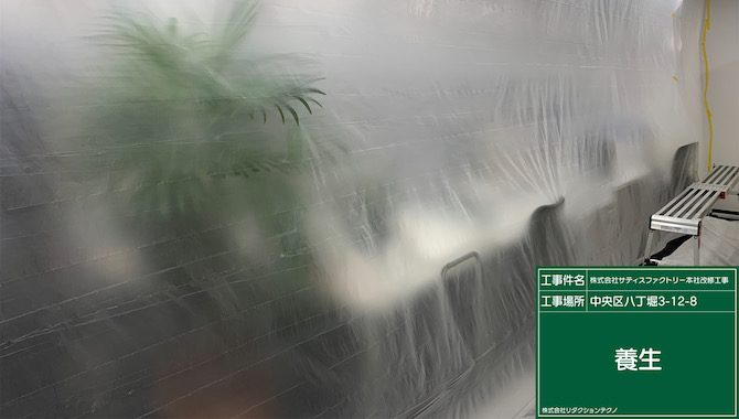 養生は既存設備を守るだけでなく、作業中のホコリやごみを飛散させない役割があります。